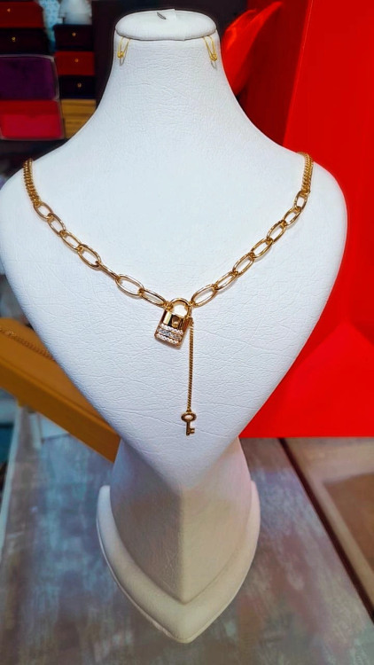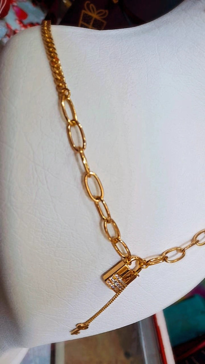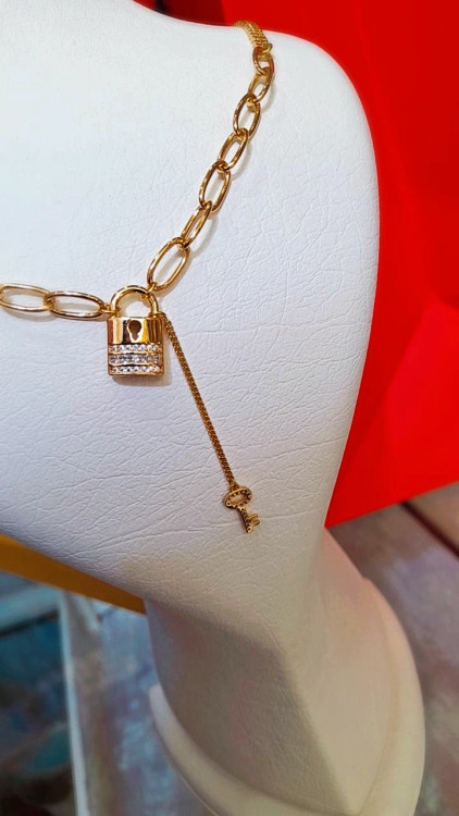 گردنبند خاص و لاکچری از برند معتبر ژوپینگ از دومدل رنجیر که ترند این روزهاست تشکیل شده با آویز قفل و کلید نگین دار قیمت فقط ۶۷۰ با وستا گالری خاص بااااش